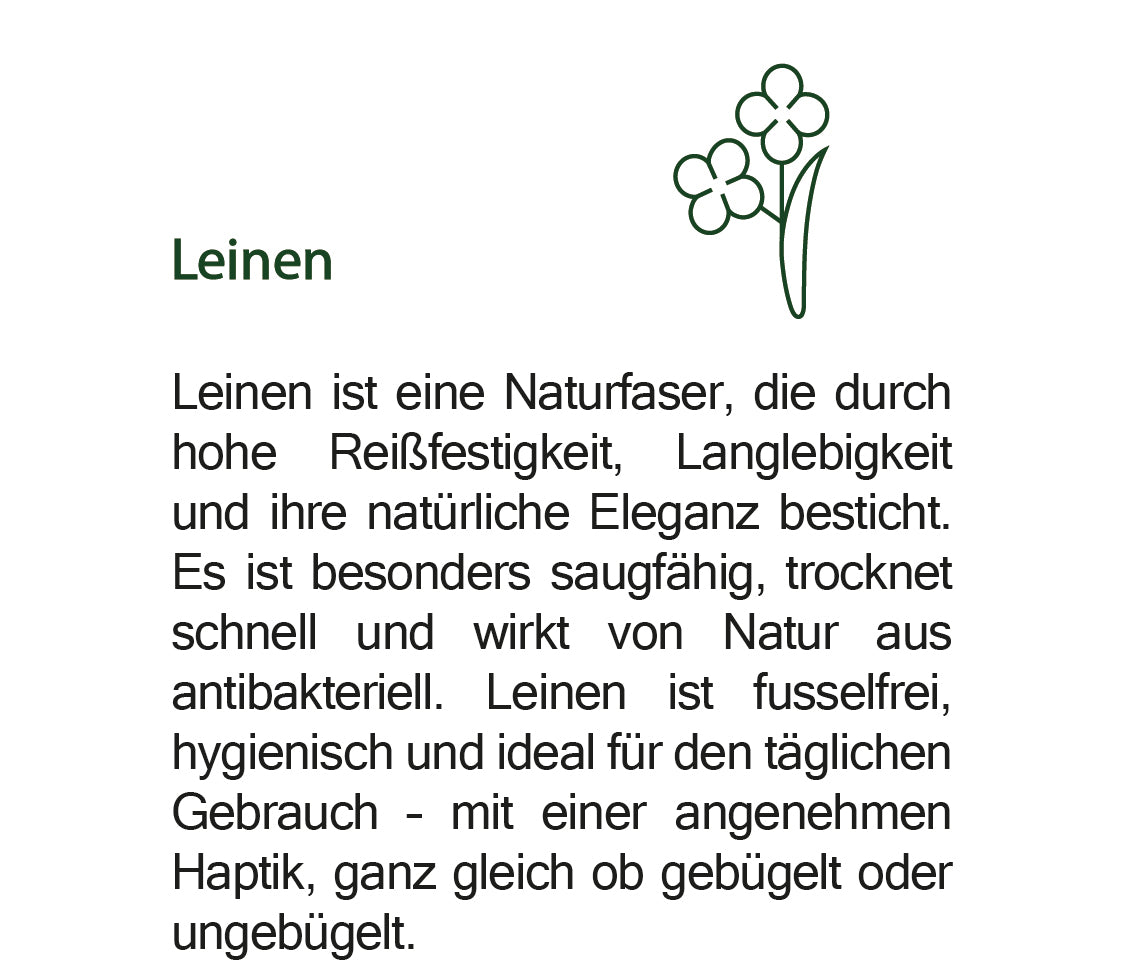 Diese Servietten aus 100 % Leinen vereinen natürliche Eleganz mit praktischen Vorteilen. Das hautfreundliche Material ist nachhaltig, pflegeleicht und überzeugt durch seine edle Optik. Der Stoff ist angenehm weich, die Farben bleiben auch nach vielen Wäschen erhalten. Ob im Alltag oder zu besonderen Anlässen – Leinen-Servietten setzen stilvolle und langlebige Akzente auf jedem gedeckten Tisch.